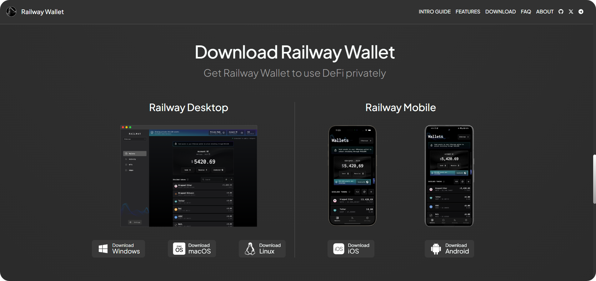 RAILGUN doesn't have an official frontend. That said, Railway is the leading community gateway to the protocol, so I recommend starting here. Install, then create a new wallet (you’ll get both a normal 0x and a private 0zk address), and secure your seed phrase somewhere safe.