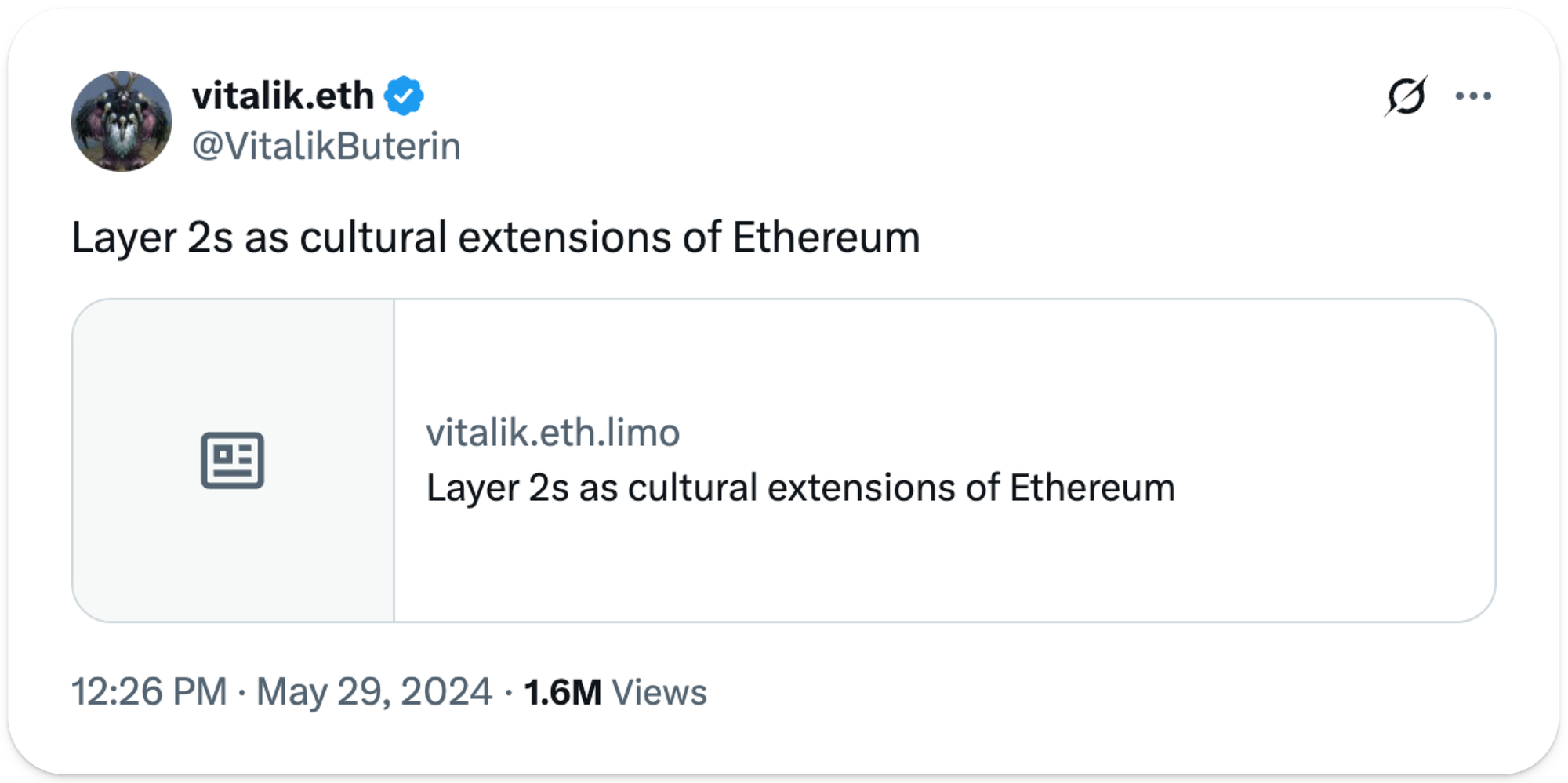 Although Vitalik emphasizes the need for faster withdrawals, higher blob space fees, and more ETH-denominated assets, he believes further development of L2s makes Ethereum an increasingly powerful gravitational center for them to continue orbiting.