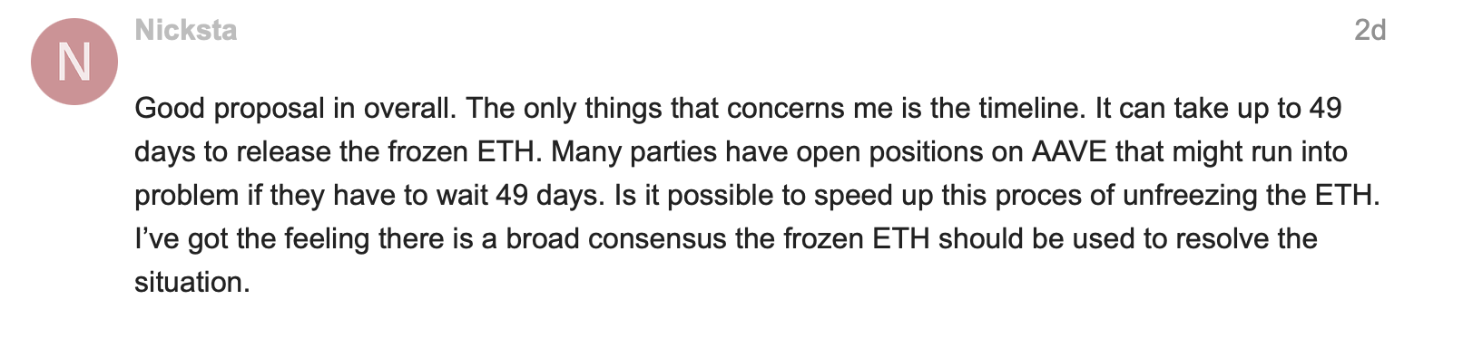 Although there is an ongoing attempt to circumvent these arduous standards for proposal passage, Arbitrum’s current rules as written entail an estimated 49-day recovery timeline.