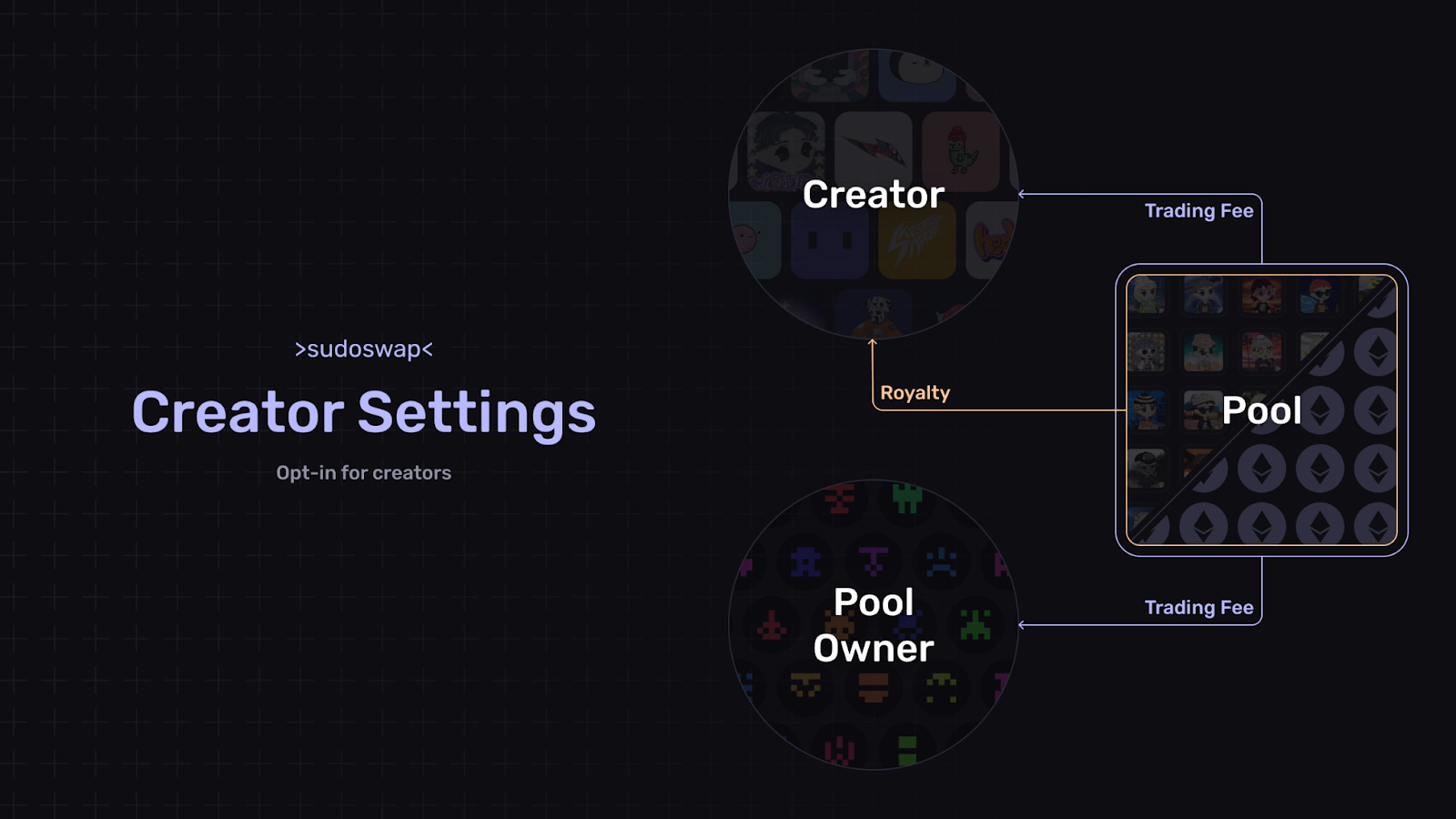 - sudoswap’s Creator Settings — This new smart contract system lets NFT creators offer reduced royalties in exchange for a share of trading fees from sudoswap liquidity pools; it’s highly flexible, with customizable liquidity-lockup periods and beyond.