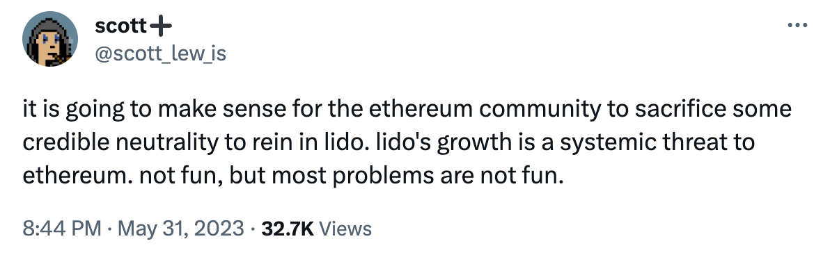 After last week's regulatory onslaught, it might be tough to focus on more existential threats to crypto, but today we're zooming in on Lido Lido centralization concerns – something that last week's CEX lawsuits may only aggravate.