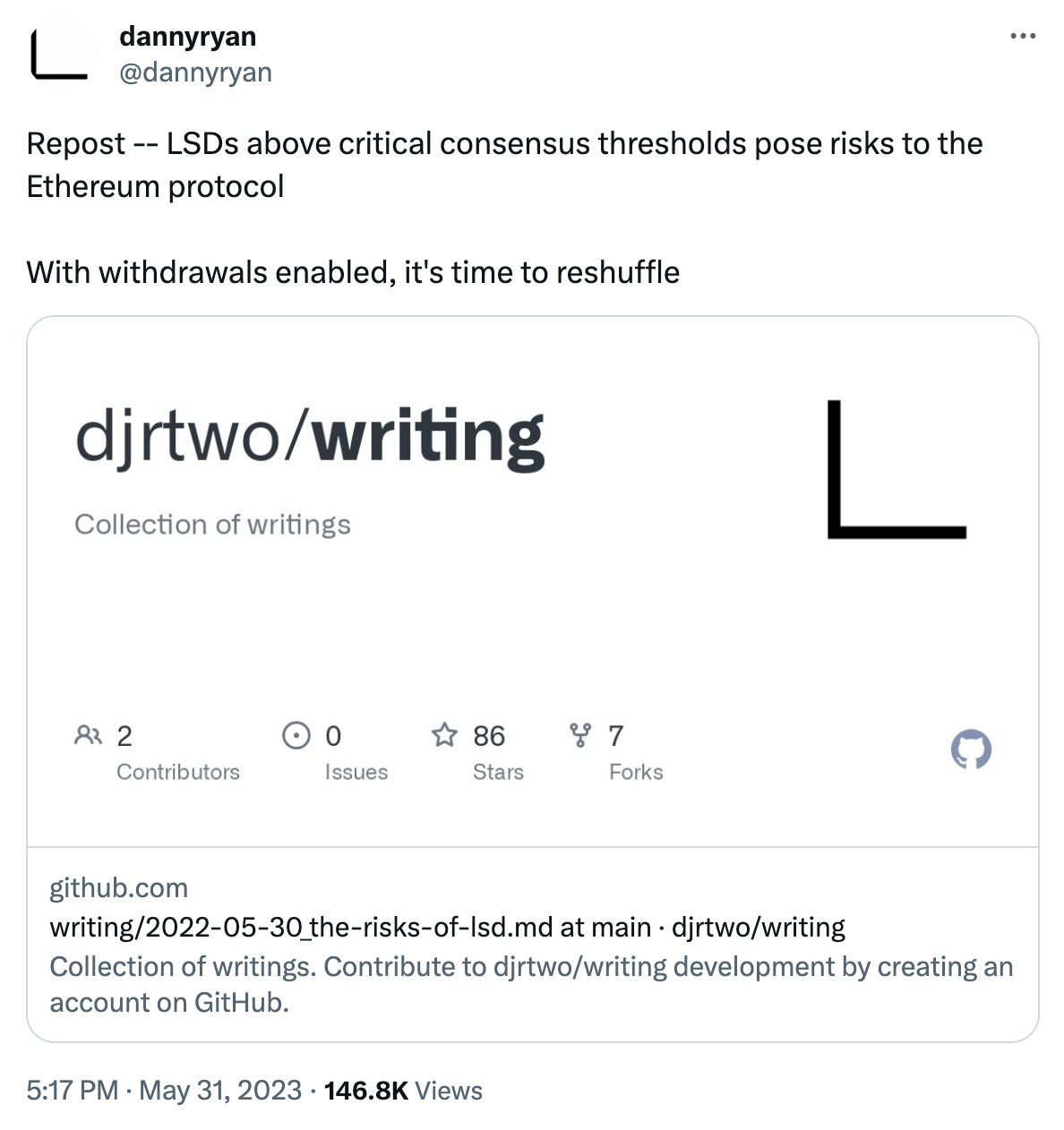 Support is growing among Etherians to reign in Lido, with some arguing that the community should forcibly clean up their act if they refuse to self-limit. While concerning, it is unlikely we see such controls implemented at the base layer, as this would require a hard fork, which risks fracturing the fragile social consensus layer of Ethereum and likely results in a highly undesirable chain split.