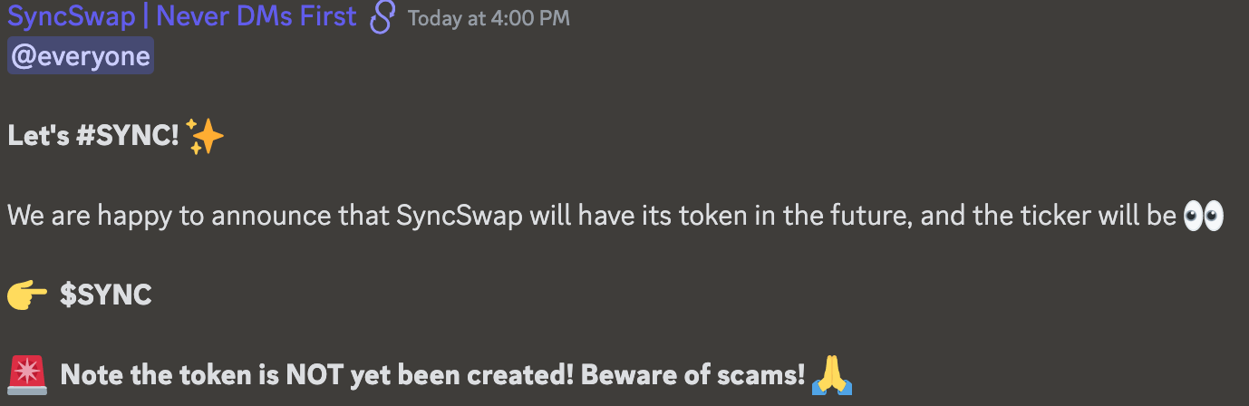 SyncSwap previously launched its Pioneer Era Campaign and Loyalty Program, rewarding early users with NFTs and token allocations. While both of these campaigns are no longer active, according to Discord messages, SYNC is imminent.