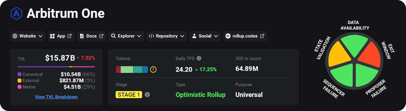Arbitrum is a leading Layer 2 (L2) scaling solution and suite of technologies designed to enhance Ethereum's scalability and reduce transaction costs. Its main offering today, Arbitrum One, is currently the largest L2 with nearly $16 billion in total value locked (TVL).