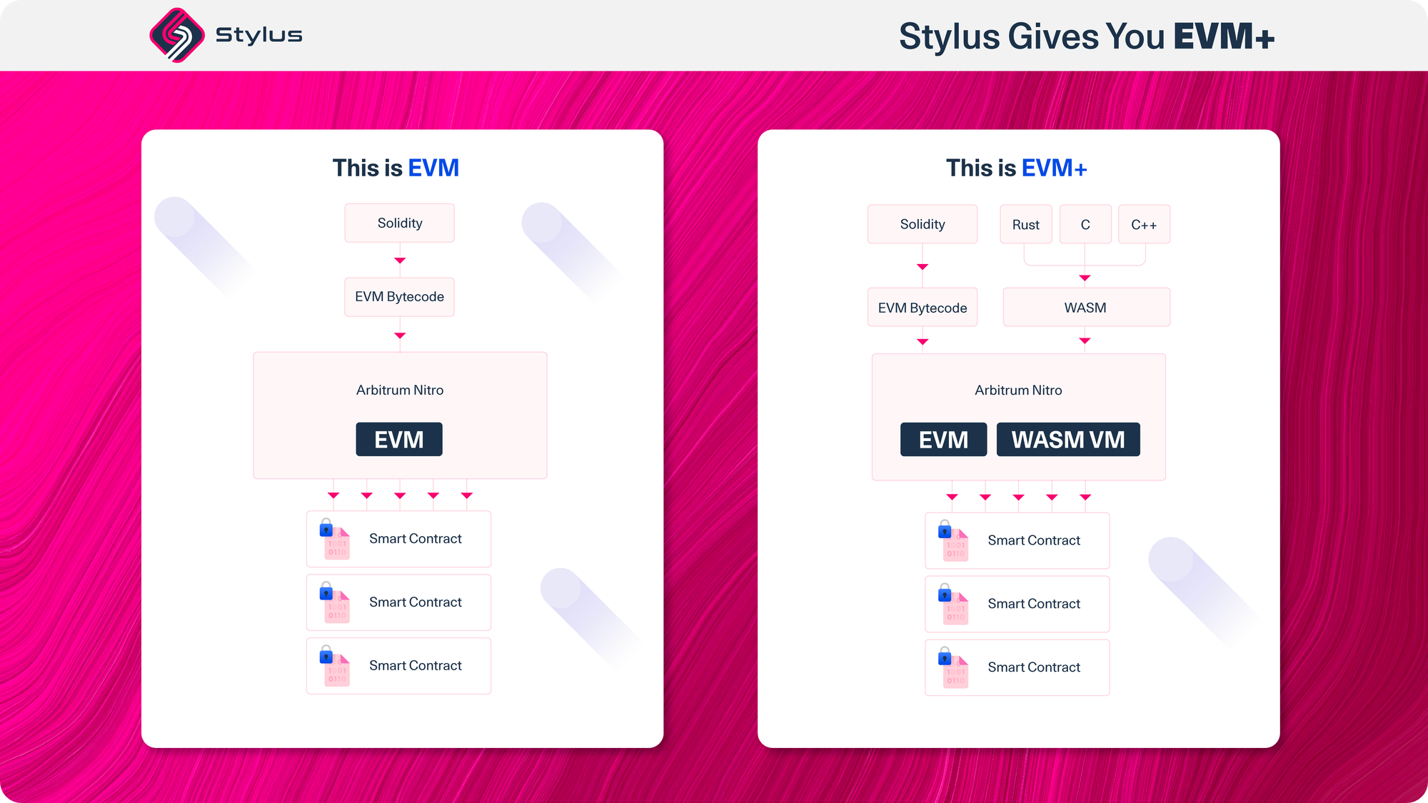 Also, the introduction of Stylus in Arbitrum Nitro is a major and compelling advancement. Stylus allows developers to write smart contracts in multiple programming languages, including Rust, C, and C++, by compiling them down to WebAssembly (WASM).