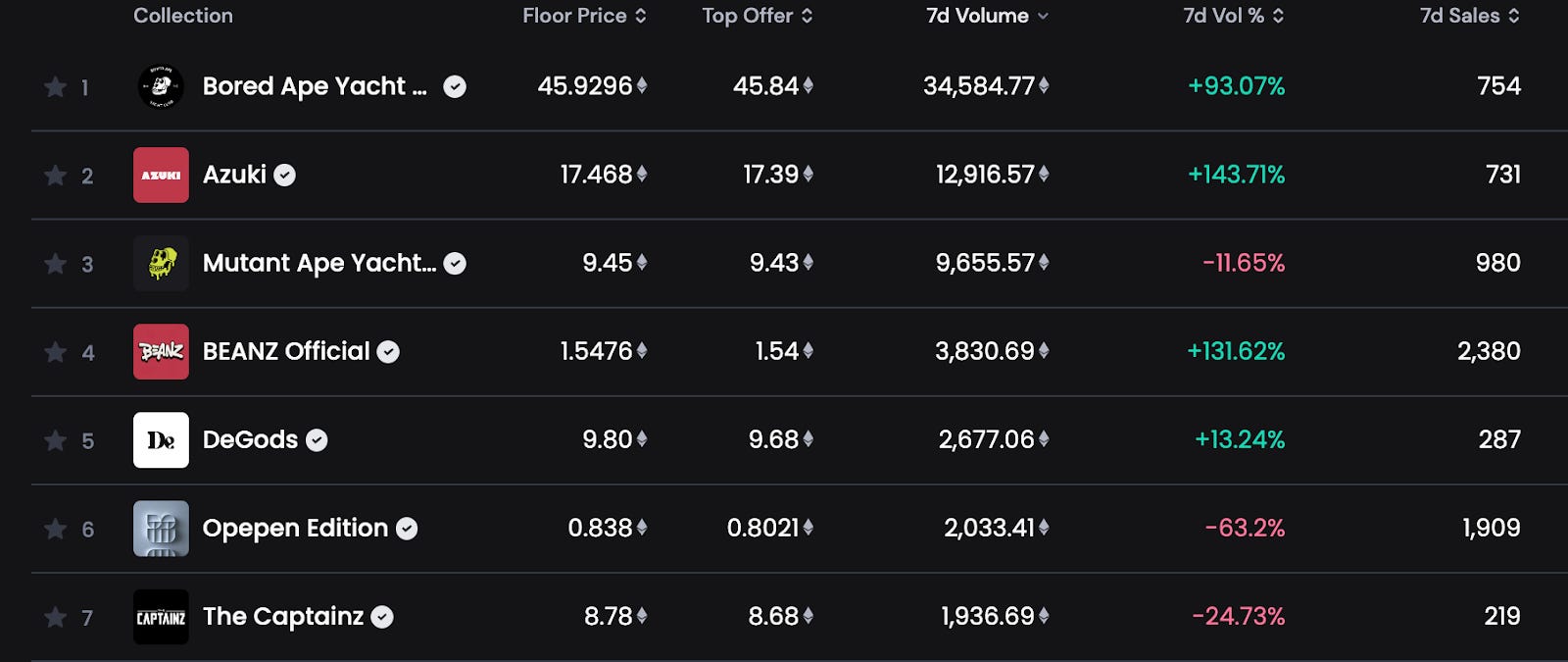 🔝 7D top collections by volume