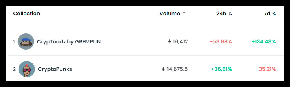 CrypToadz is topping OpenSea’s weekly volume charts right now 🐸 Catch up on what the project’s all about with the Metaversal beginner’s guide.