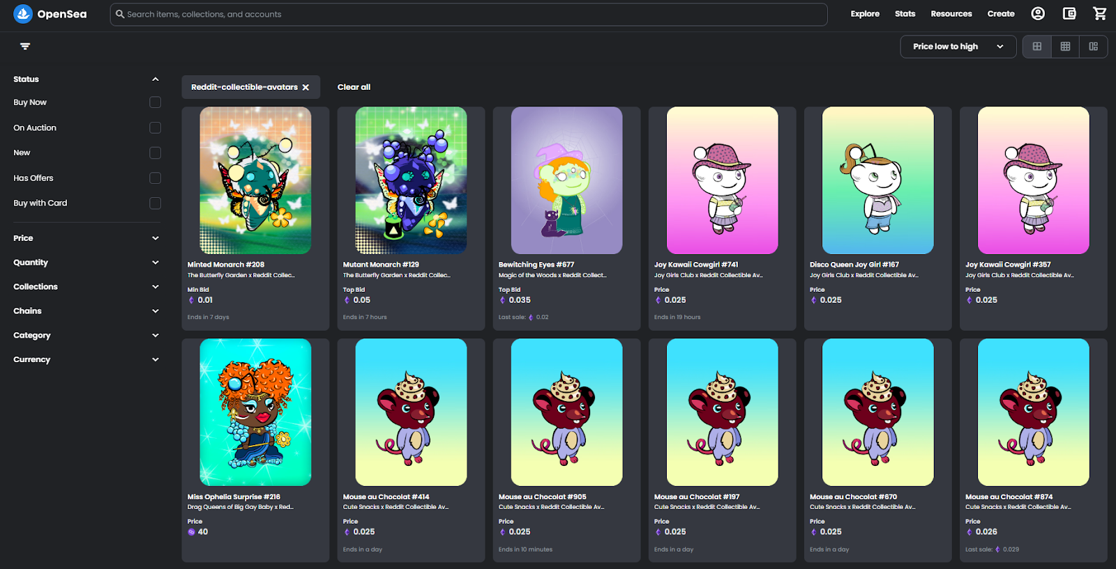 Once you sign in to OpenSea, you can use your wallet dashboard to bridge ETH and MATIC from Ethereum to Polygon if you need to. Then you could search around on the Reddit Collectible Avatars series overview page or through all the avatars at once to review the available listings.