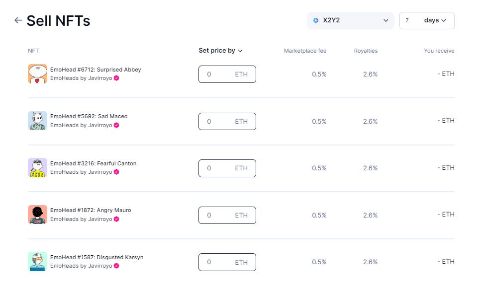 - Select the NFTs you want to list for sale and then press the “Continue” button